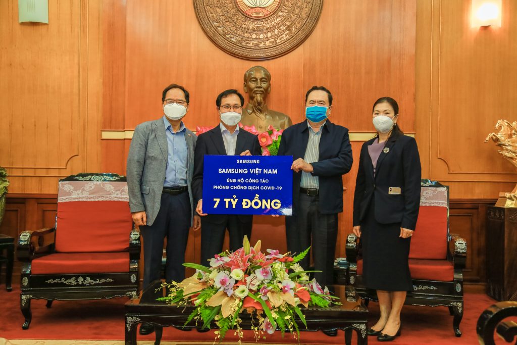 (VOVWORLD) - 베트남 삼성은 코로나19 방역 상황에서 베트남 정부와 협력하는 차원에 베트남 조국전선중앙위원회에 70억 동을, 박닌(Bắc Ninh)과 타이 응우옌 (Thái Nguyên)성 조국전선위원회에 30억 동을 각각 지원했다.