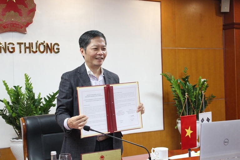 (VOVWORLD) - 4월 13일 오후 공상부 청사에서 쩐 뚜언 아인 (Tran Tuan Anh) 공상부 장관은 성윤모 한국 산업통상자원부 장관과 온라인 회담을 가졌다.
