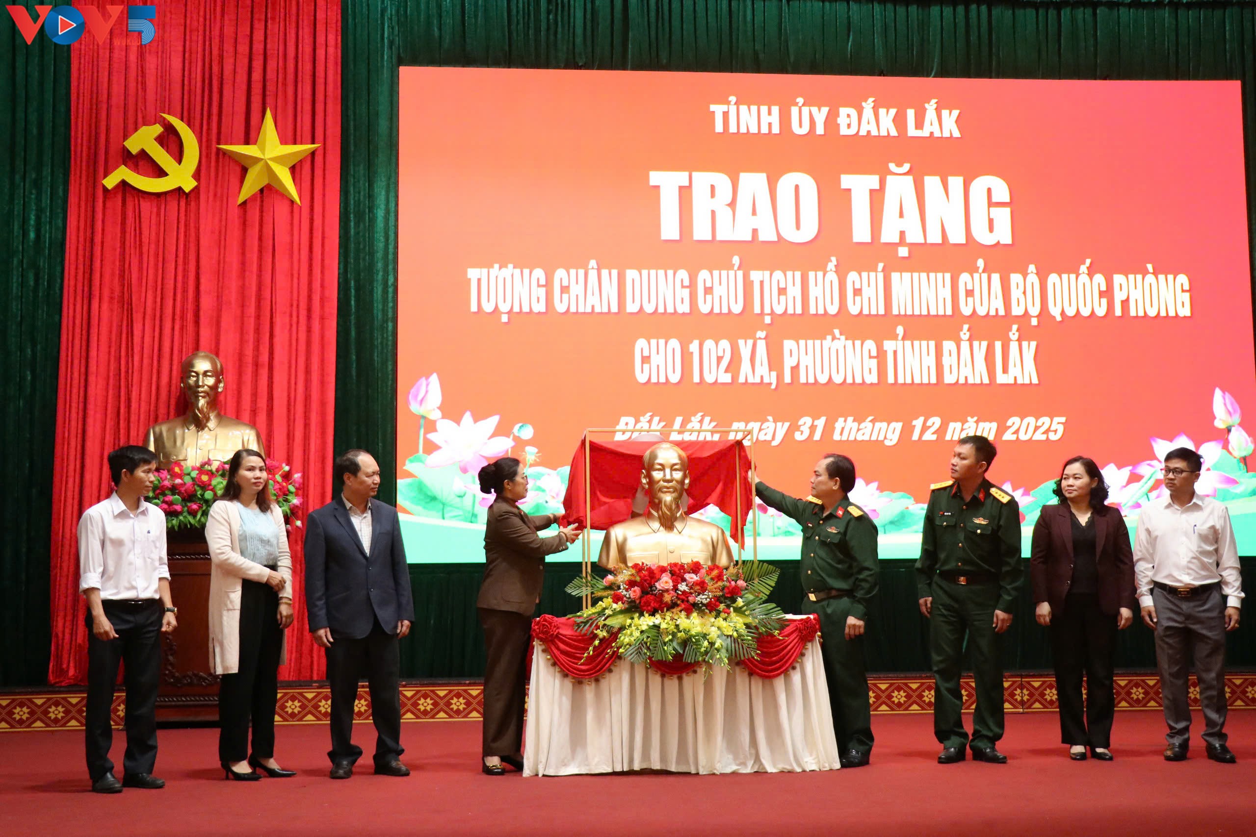 (VOVWORLD) - 12월 31일 오전, 닥락(Đắk Lắk)성 군사 지휘부와 닥락성 당 위원회 상임부는 성 전역 102개 동·면에 호찌민 주석 두상 전달식을 개최했다. 이는 베트남 국회 최초 총선거의 날 80주년과 제14차 당 전국 대표대회를 기념하는 의미 있는 활동이다.