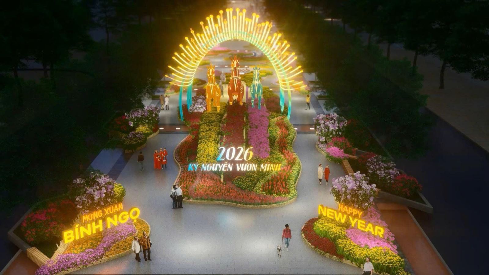 (VOVWORLD) - ‘봄의 모임 – 굳건한 발걸음으로 도약’을 주제로 한 2026년 병오년 설 맞이 응우옌 후에(Nguyễn Huệ) 꽃 길은 호찌민시에서 2026년 2월 15일 오후 7시부터 2월 22일 오후 9시까지 개방될 예정이다.