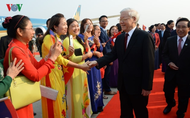 | 2월24일 오전 응우옌 푸 쫑 총서기장-국가주석과 베트남 고위급 대표단은 분낭 보라치트 (Bounnhang Vorachith) 라오스 총서기장-국가주석의 초청으로 수도 비엔타인의 왓따이 국제 공항에 도착하여 라오스 인민민주주의공화국에서 공식적인 우호 방문을 시작하였다. |