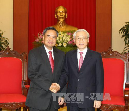 ທ່ານເລຂາທິການໃຫຍ່ Nguyen Phu Trong ໄດ້ໃຫ້ການຕ້ອນຮັບຄະນະຜູ້ແທນຂັ້ນສູງຄະນະຈັດຕັ້ງສູນກາງພັກປະຊາຊົນປະຕິວັດລາວ ໂດຍທ່ານ ຈັນສີ ໂພສີຄຳ, ເລຂາສູນກາງພັກ, ຫົວໜ້າຄະນະຈັດຕັ້ງສູນກາງເປັນຫົວໜ້າຄະນະ ທີ່ມາຢ້ຽມຢາມ ແລະ ເຮັດວຽກຢູ່ຫວຽດນາມ.
