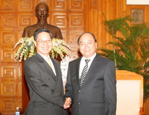 ຮອງນາຍົກລັດຖະມົນຕີ Nguyen Xuan Phuc ຕ້ອນຮັບ ລັດຖະມົນຕີກະຊວງອຸດສະຫະກຳ ການຄ້າລາວ
