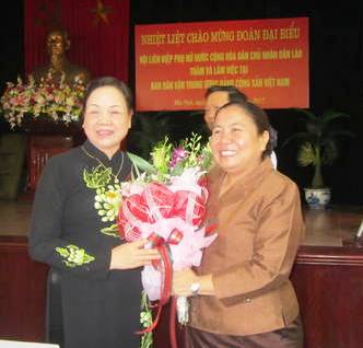 ເລຂາສູນກາງພັກ, ຫົວໜ້າຄະນະຂົນຂວາຍປະຊາຊົນສູນກາງ Ha Thi Khiet ຕ້ອນຮັບ ຄະນະຜູ້ແທນຂັ້ນສູງສະຫະພັນແມ່ຍິງລາວ