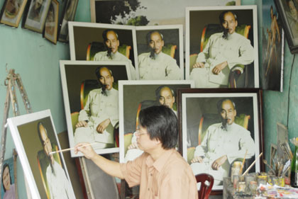 ຈິດຕະກອນ ເຈິ່ນຮ່ວາບິ່ງ, ຜູ້ແຕ້ມຮູບປະທານ ໂຮ່ຈີມິນ ໄດ້ເກືອບ 600 ແຜ່ນ
