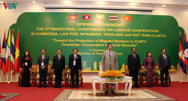 (VOVWORLD) - ກອງປະຊຸມລັດຖະມົນຕີກະຊວງແຮງງານຂອງບັນດາປະເທດ ກໍາປູເຈຍ, ລາວ, ມຽນມາ, ໄທ ແລະ ຫວຽດນາມ (CLMTV) ຄັ້ງທີ 3 ຖືກໄຂຂຶ້ນຢ່າງເປັນທາງການໃນວັນທີ 17 ກັນຍາ, ຢູ່ນະຄອນ Siem Reap, ປະເທດ ກໍາປູເຈຍ. ຄະນະຜູ້ແທນຫວຽດນາມ ໂດຍທ່ານນາງຮອງລັດຖະມົນຕີກະຊວງແຮງງານ, ທະຫານເສຍອົງຄະ ແລະ ສັງຄົມ ຫວຽດນາມ ຫງວຽນທິຮ່າ ໄດ້ນໍາໜ້າຄະນະເຂົ້າຮ່ວມກອງປະຊຸມ.