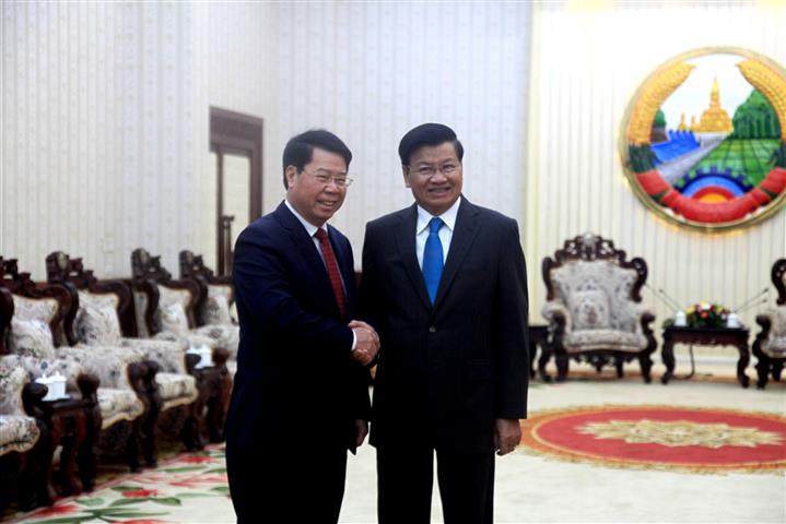 ທ່ານຮອງນາຍົກລັດຖະມົນຕີຜູ້ປະຈໍາການລັດຖະບານ ເຈືອງຮວ່າບິ່ງ ຕ້ອນຮັບທ່ານປະທານສານປະຊາຊົນສູງສຸດລາວ ຄໍາພາ ແສງດາຣາ