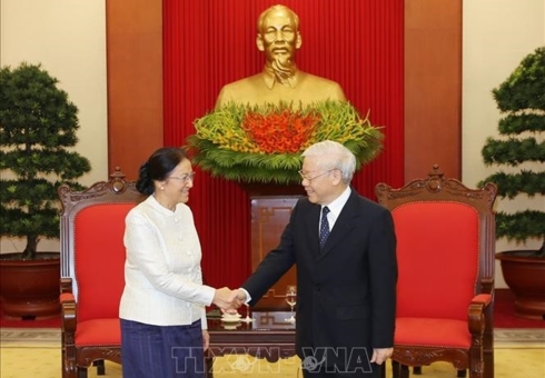 ທ່ານເລຂາທິການໃຫຍ່, ປະທານປະເທດ ຫງວຽນຝູຈ້ອງ ຕ້ອນຮັບທ່ານນາງປະທານສະພາແຫ່ງຊາດລາວ ປານີ ຢາທໍ່ຕູ້