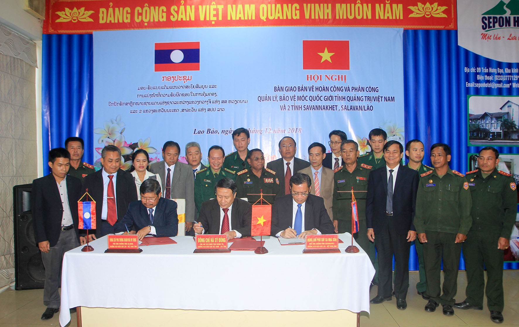 (VOVWORLD) -ວັນທີ 25 ທັນວາ, ຢູ່ເທດສະບານເມືອງລາວບາວ, ເມືອງ ເຮື໊ອງຮ໊ວາ, ແຂວງກວາງຈີ້, ໄດ້ດຳເນີນກອງປະຊຸມມອບຮັບແບບແຕ້ມແຜນວາດສະບັບສົມບູນ ແລະ ການແບ່ງໜ້າທີ່ຄວາມຮັບຜິດຊອບໃນການຄຸ້ມຄອງ, ປົກປັກຮັກສາຫຼັກໝາຍຊາຍແດນແຫ່ງຊາດລະຫວ່າງແຂວງກວາງຈີ້ (ຫວຽດນາມ) ແລະ 2 ແຂວງ ສະຫວັນນະເຂດ, ແຂວງ ສາລະວັນ (ລາວ).