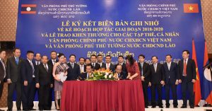 (VOVWORLD) -ໂດຍຕອບສະໜອງຕາມຄຳເຊີນຂອງສະຫາຍ ມາຍຕຽນຢຸ້ງ ກຳມະການ ສູນກາງພັກ, ລັດຖະມົນຕີ, ຫົວໜ້າຫ້ອງວ່າການລັດຖະບານ ແຫ່ງ ສສ ຫວຽດນາມ, ໃນລະຫວ່າງວັນທີ 19-23 ກັນຍາ 2018 ສະຫາຍ ເພັດ ພົມພິພັກ ກຳມະການສູນກາງພັກ, ລັດຖະມົນຕີ, ຫົວໜ້າຫ້ອງວ່າການ ສໍານັກງານນາຍົກລັດຖະມົນຕີ ແຫ່ງ ສປປ ລາວ ພ້ອມດ້ວຍຄະນະ ໄດ້ເດີນທາງໄປຢ້ຽມຢາມ ແລະ ເຮັດວຽກຮ່ວມກັບຄະນະນໍາ ຫ້ອງວ່າການ ລັດຖະບານແຫ່ງ ສສ ຫວຽດນາມ ຢູ່ນະຄອນຍາຈາງ, ແຂວງແຄງຮວ່າ, ສສ. ຫວຽດນາມ, ໂດຍໄດ້ຮັບການຕ້ອນຮັບຢ່າງອົບອຸ່ນ ແລະ ສົມກຽດຈາກ ຄູ່ຮ່ວມຕຳແຫນ່ງຈາກ ສສ ຫວຽດນາມ ພ້ອມດ້ວຍຄະນະ.