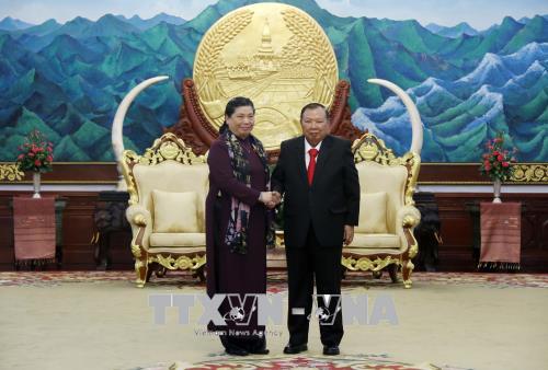 (VOVWORLD) -ຕອນບ່າຍວັນທີ 24 ເມສາ, ທ່ານເລຂາທິການໃຫຍ່ ປະທານປະເທດລາວ ບຸນຍັງ ວໍລະຈິດ ແລະ ທ່ານນາຍົກລັດຖະມົນຕີ ລາວ ທອງລຸນ ສີສຸລິດ ໄດ້ໃຫ້ການຕ້ອນຮັບຄະນະຜູ້ແທນຂັ້ນສູງສະພາແຫ່ງຊາດຫວຽດນາມ ໂດຍທ່ານນາງຮອງປະທານສະພາແຫ່ງຊາດຫວຽດນາມ ຕ່ອງທິຟອງ ເປັນຫົວຫນ້າຄະນະ.