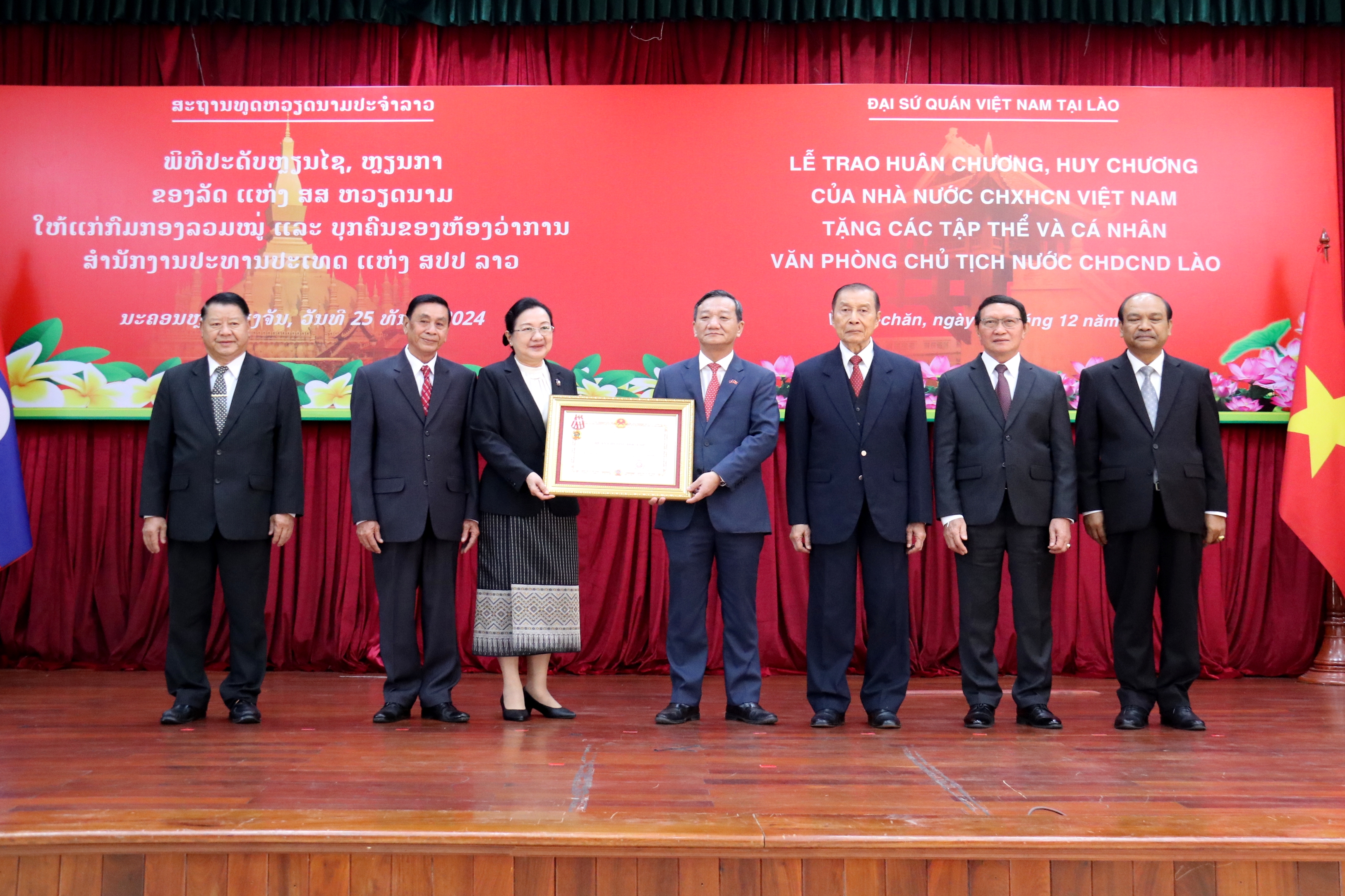 (VOVWORLD) - ໃນຂອບເຂດການຢ້ຽມຢາມ ລາວ ແລະ ເປັນປະທານຮ່ວມກອງປະຊຸມປຶກສາຫາລືການເມືອງຂັ້ນລັດຖະມົນຕີການຕ່າງປະເທດ ຫວຽດນາມ - ລາວ ຄັ້ງທີ 11, ວັນທີ 17 ທັນວາ, ທ່ານຮອງນາຍົກລັດຖະມົນຕີ, ລັດຖະມົນຕີກະຊວງການຕ່າງປະເທດ ຫວຽດນາມ ບຸ່ຍແທັງເຊີນ ໄດ້ພົບປະກັບທ່ານເລຂາທິການໃຫຍ່, ປະທານປະເທດ ລາວ ທອງລຸນ ສີສຸລິດ ແລະ ທ່ານນາຍົກລັດຖະມົນຕີ ລາວ ສອນໄຊ ສີພັນດອນ.