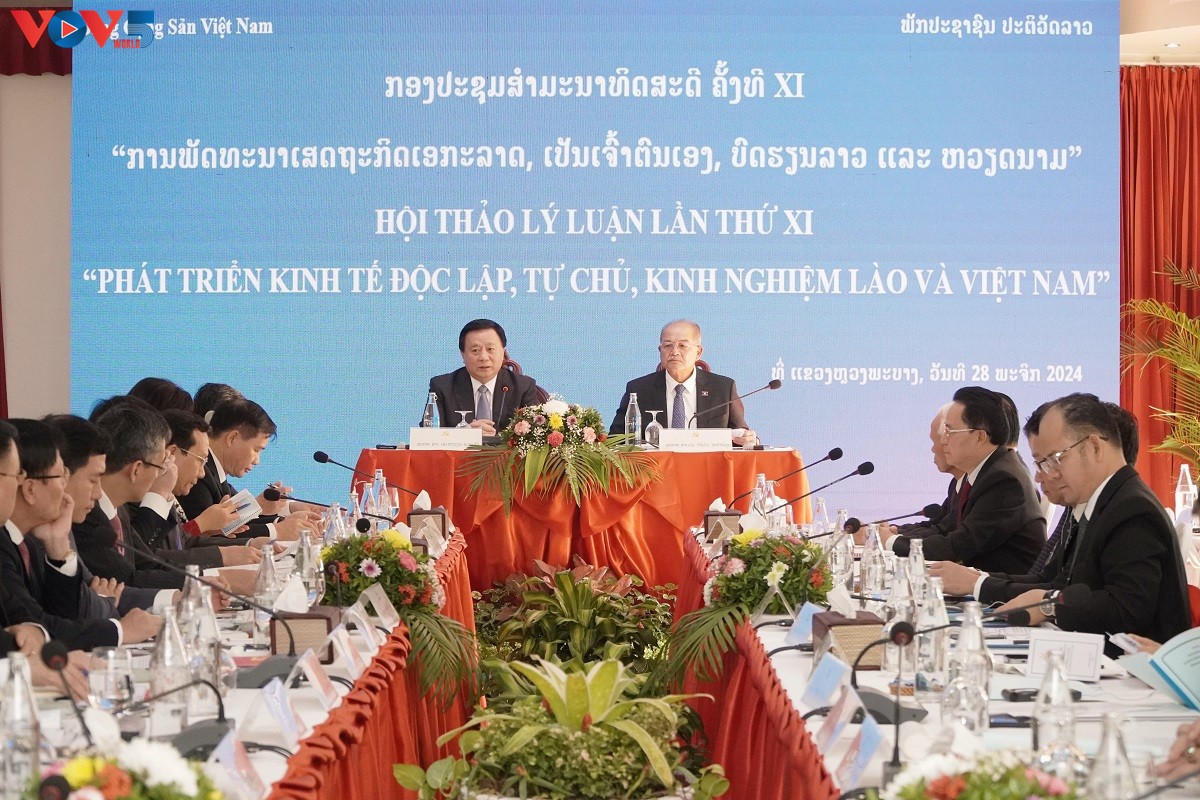 (VOVWORLD) - ວັນທີ 28 ພະຈິກ, ຢູ່ແຂວງຫຼວງພະບາງ, ທາງພາກເໜືອ ລາວ, ໄດ້ດຳເນີນກອງປະຊຸມສຳມະນາທິດສະດີຄັ້ງທີ 11 ລະຫວ່າງພັກຄອມມູນິດ ຫວຽດນາມ ແລະ ພັກປະຊາຊົນປະຕິວັດລາວ ດ້ວຍຫົວຂໍ້ “ພັດທະນາເສດຖະກິດເອກະລາດ, ເປັນເຈົ້າຕົນເອງ - ປະສົບການຂອງ ຫວຽດນາມ ແລະ ລາວ”.