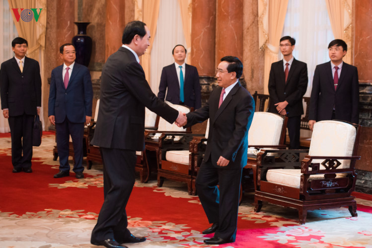 (VOVWORLD) - ຕອນບ່າຍວັນທີ 18 ກໍລະກົດ, ຢູ່ທຳນຽບປະທານປະເທດ, ທ່ານປະທານປະເທດ ເຈີນດ້າຍກາງ ໄດ້ໃຫ້ການຕ້ອນຮັບທ່ານຮອງປະທານປະເທດ ສປປ.ລາວ ພັນຄຳ ວິພາວັນ