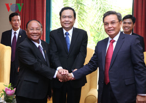 (VOVWORLD) - ຕອນບ່າຍວັນທີ 25 ມິຖຸນາ, ຢູ່ຮ່າໂນ້ຍ, ທ່ານເລຂາທິການໃຫຍ່ຄະນະບໍລິຫານງານສູນກາງພັກກອມມູນິດ ຫວຽດນາມ ຫງວຽນຟູ໋ຈ້ອງ ໄດ້ຕ້ອນຮັບທ່ານ Samdech Heng Samrin, ປະທານກິຕິມະສັກພັກປະຊາຊົນ ກຳປູເຈຍ, ປະທານສະພາແຫ່ງຊາດ ລາຊະອານາຈັກ ກຳປູເຈຍ, ປະທານສະພາຊົນຊາດແນວໂຮມສາມັກຄີພັດທະນາປະເທດຊາດ ກຳປູເຈຍ ນຳໜ້າຄະນະຜູ້ແທນຂັ້ນສູງ ສະພາແຫ່ງຊາດ ແລະ ສະພາຊົນຊາດແນວໂຮມສາມັກຄີພັດທະນາປະເທດຊາດ ກຳປູເຈຍ ມາຢ້ຽມຢາມ ຫວຽດນາມ ຢ່າງເປັນທາງການ.