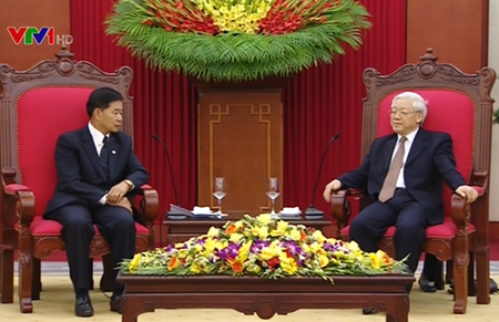 ເລຂາທິການໃຫຍ່ຫງວຽນຟູ໋ຈ້ອງ ຕ້ອນຮັບເຈົ້າຄອງນະຄອນຫຼວງ ວຽງຈັນ, ປະເທດລາວ