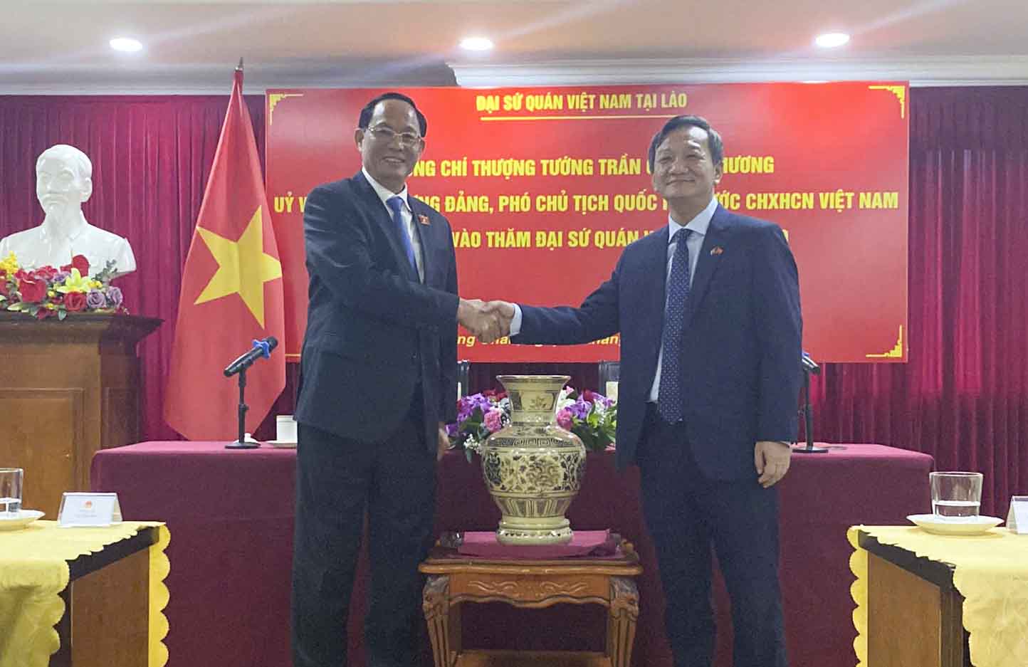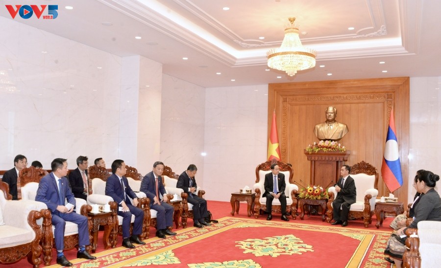 (VOVWORLD) - ໃນການຢ້ຽມຢາມ ລາວ ຢ່າງເປັນທາງການ ແລະ ເຂົ້າຮ່ວມກອງປະຊຸມສະມັດຊາໃຫຍ່ ໄອປາ ຄັ້ງທີ 45, ຕອນບ່າຍວັນທີ 17 ຕຸລາ, ຢູ່ນະຄອນຫຼວງ ວຽງຈັນ, ທ່ານປະທານສະພາແຫ່ງຊາດ ຫວຽດນາມ ເຈິ່ນແທັງເໝິນ ໄດ້ໃຫ້ການຕ້ອນຮັບທ່ານອະດີດນາຍົກລັດຖະມົນຕີ, ອະດີດປະທານສະພາແຫ່ງຊາດ ລາວ ທອງສິງ ທຳມະວົງ.