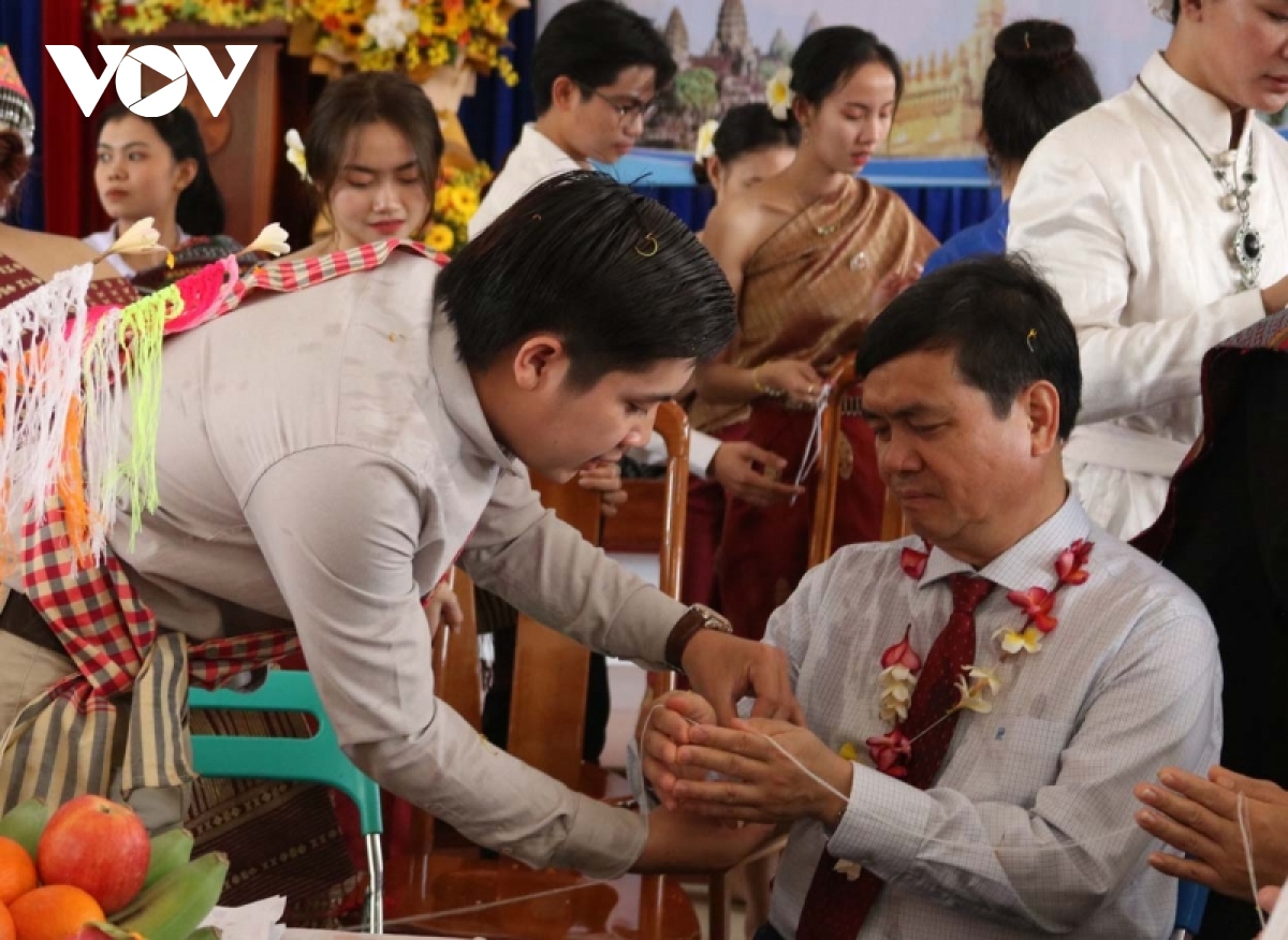 (VOVWORLD) - ເນື່ອງໃນໂອກາດບຸນປີໃໝ່ຂອງ 2 ປະເທດ ລາວ ແລະ ກຳປູເຈຍ, ວັນທີ 9 ເມສາ, ຢູ່ນະຄອນ ກອນຕຸມ, ມະຫາວິທະຍາໄລ ດ່າໜັງ ສາຂາ ກອນຕຸມ ໄດ້ສົມທົບກັບສະມາຄົມມິດຕະພາບ ຫວຽດນາມ - ລາວ - ກຳປູເຈຍ ແຂວງ ກອນຕຸມ, ຈັດງານພົບປະແລກປ່ຽນວັດທະນະທຳ ຫວຽດນາມ - ລາວ - ກຳປູເຈຍ.