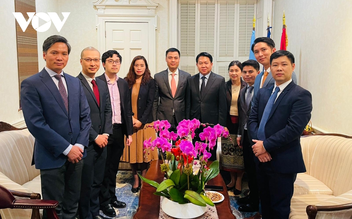 (VOVWORLD) - ວັນທີ 23 ມີນາ, ຢູ່ນະຄອນຫຼວງ ວຽງຈັນ, ທ່ານ ຫງວຽນມິງເຕີມ ເອກອັກຄະລັດຖະທູດ ຫວຽດນາມ ປະຈຳ ລາວ ພ້ອມດ້ວຍຄະນະຜູ້ແທນສະ...