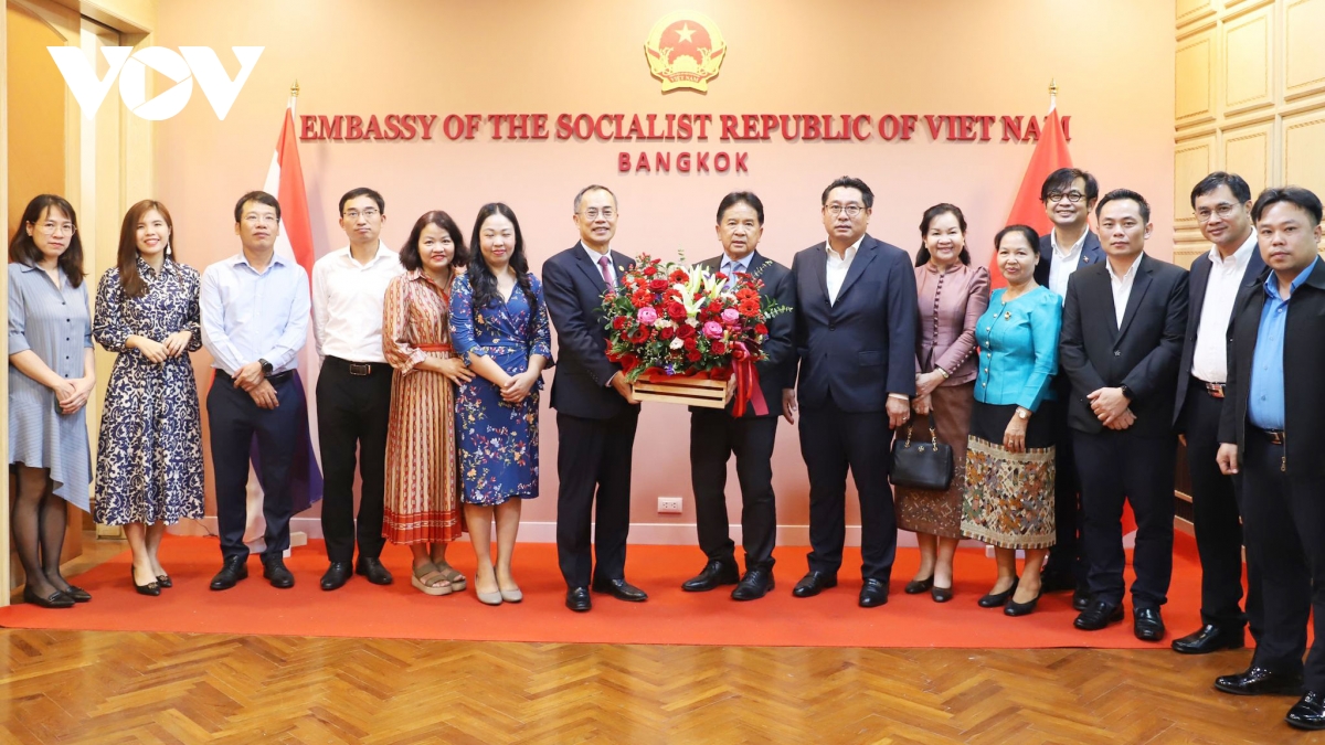 (VOVWORLD) -ຕອນຄ່ຳວັນທີ 31 ສິງຫາ, ທ່ານເອກອັກຄະລັດຖະທູດ ລາວປະຈຳ ໄທ ຄຳພັນ ອັ່ນລາວັນ, ໄດ້ນຳໜ້າຄະນະຜູ້ແທນສະຖານທູດລາວໄປຢ້ຽມຢາມ, ອວຍພອນຢູ່ສະຖານທູດ ຫວຽດນາມ ປະຈຳ ໄທ ເນື່ອງໃນໂອກາດສະເຫຼີມສະຫຼອງ 77 ປີແຫ່ງວັນຊາດຫວຽດນາມ.