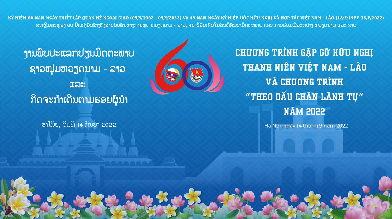 (VOVWORLD) -ລາຍການພົບປະມິດຕະພາບ ຊາວໜຸ່ມຫວຽດນາມ ຫວຽດນາມ - ລາວ ແລະ ລາຍການ “ເດີນຕາມຮອຍຜູ້ນຳ” ປີ 2022 ໂດຍສູນກາງຄະນະຊາວໜຸ່ມກອມມູນິດ ໂຮ່ຈີມິນ ໄດ້ສົມທົບກັບ ສູນກາງຄະນະຊາວໜຸ່ມ ປະຊາຊົນປະຕິວັດ ລາວ ຈະດຳເນີນຢູ່ບາງແຂວງ, ນະຄອນຢູ່ ຫວຽດນາມ ໃນລະຫວ່າງວັນທີ 12 – 18 ກັນຍາ ປີ 2022