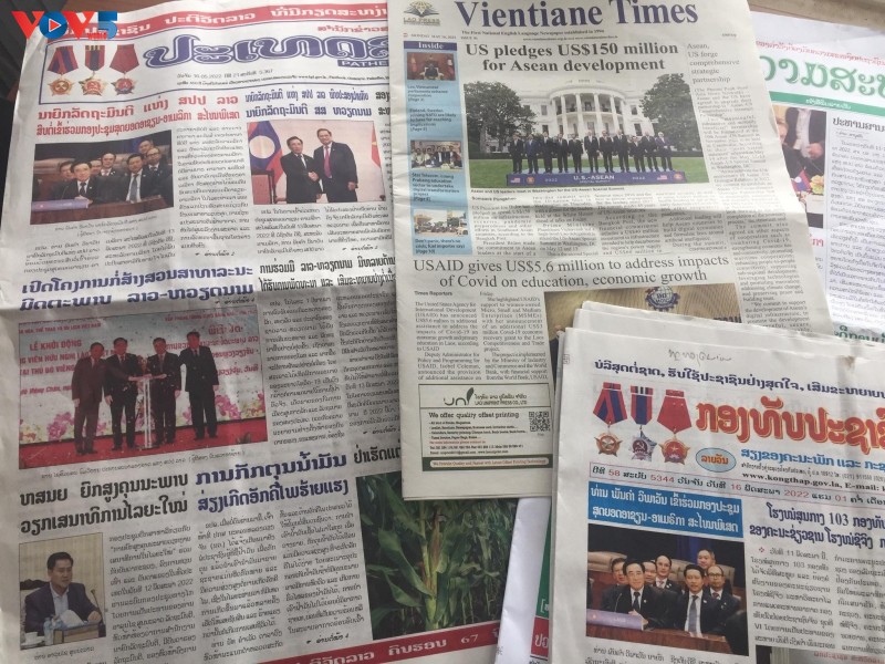 (VOVWORLD) - ຕອນເຊົ້າວັນທີ 16 ພຶດສະພາ, ໃນໜ້າທໍາອິດຂອງບັນດາໜັງສືພິມໃຫຍ່, ວິທະຍຸແຫ່ງຊາດ, ໂທລະພາບແຫ່ງຊາດ ລາວ ໄດ້ລົງຂ່າວຢ່າງຕໍ່ເນື່ອງ ກ່ຽວກັບການເຄື່ອນໄຫວຂອງຄະນະຜູ້ແທນຂັ້ນສູງສະພາແຫ່ງຊາດ ຫວຽດນາມ ກໍຄືເຫດການທີ່ກ່ຽວຂ້ອງ.