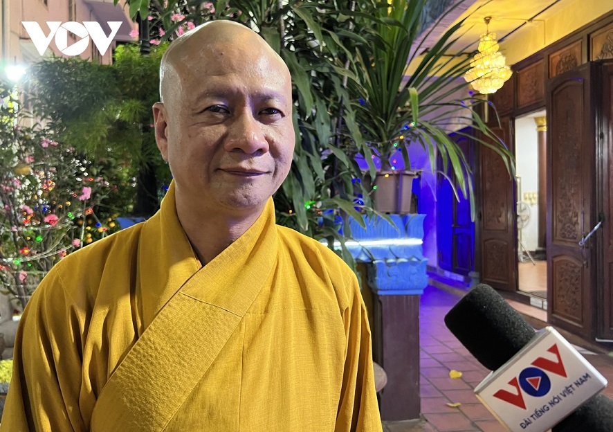 (VOVWORLD) -ຕອນເຊົ້າວັນທີ 15 ກຸມພາ, ກົງກັບວັນເພັງເດືອນ ຈຽງ ປີຂານ 2022, ວັດເຟິດຕິກ ຢູ່ນະຄອນຫຼວງວຽງຈັນ (ລາວ) ໄດ້ຈັດຕັ້ງພິທີ ສວດມົນ ພາວະນາຂໍ ໃຫ້ ຊາວຫວຽດນາມ ພວມຮ່ຳຮຽນ, ດຳລົງຊີວິດ ແລະ ເຮັດວຽກຢູ່ລາວມີຄວາມຢູ່ເຢັນເປັນສຸກ.