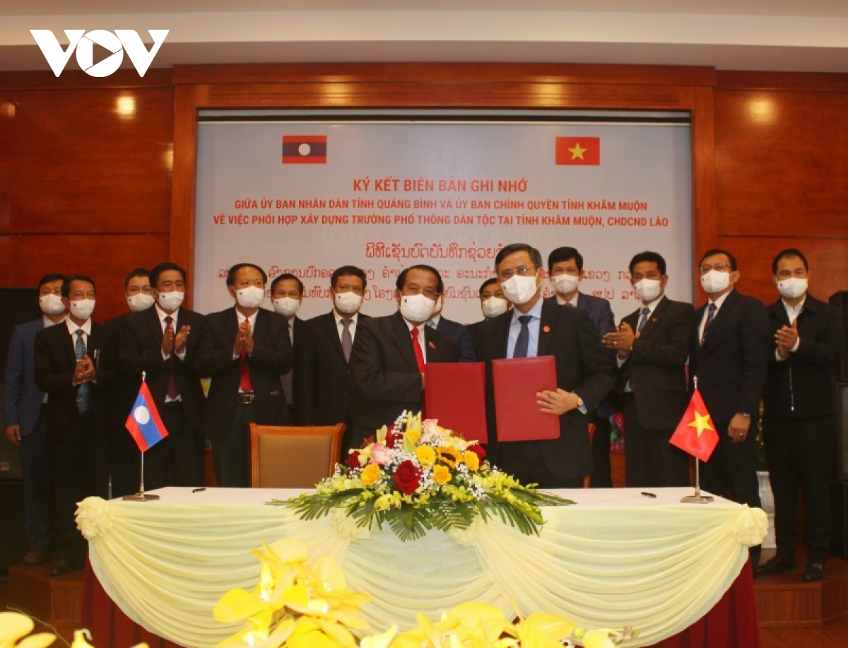 (VOVWORLD) -ທ່ານ ເຈີນທັງ, ປະທານຄະນະປະກຳມະການຊາຊົນແຂວງ ກວາງບິງ ແລະ ທ່ານ ວັນໄຊ ພົງສະຫວັນ, ເລຂາພັກແຂວງ, ເຈົ້າແຂວງໆ ຄຳມ່ວນ, ໄດ້ລົງນາມບົດບັນທຶກຊ່ວຍຈຳກ່ຽວກັບການສົມທົບກັນກໍ່ສ້າງໂຮງຮຽນສາມັນກິນນອນຊົນເຜົ່າຢູ່ແຂວງ ຄຳມ່ວນ.