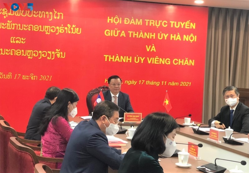 (VOVWORLD) -ຕອນເຊົ້າວັນທີ 17 ພະຈິກ, ທ່ານດິງຕຽນຢຸງ ເລຂາຄະນະພັກນະຄອນຮ່າໂນ້ຍ ໄດ້ພົບປະເຈລະຈາທາງໄກ ກັບ ທ່ານ ອະນຸພາບ ຕຸນາລົມ ເລຂາຄະນະພັກນະຄອນ, ປະທານສະພາປະຊາຊົນນະຄອນຫຼວງວຽງຈັນ (ລາວ).
