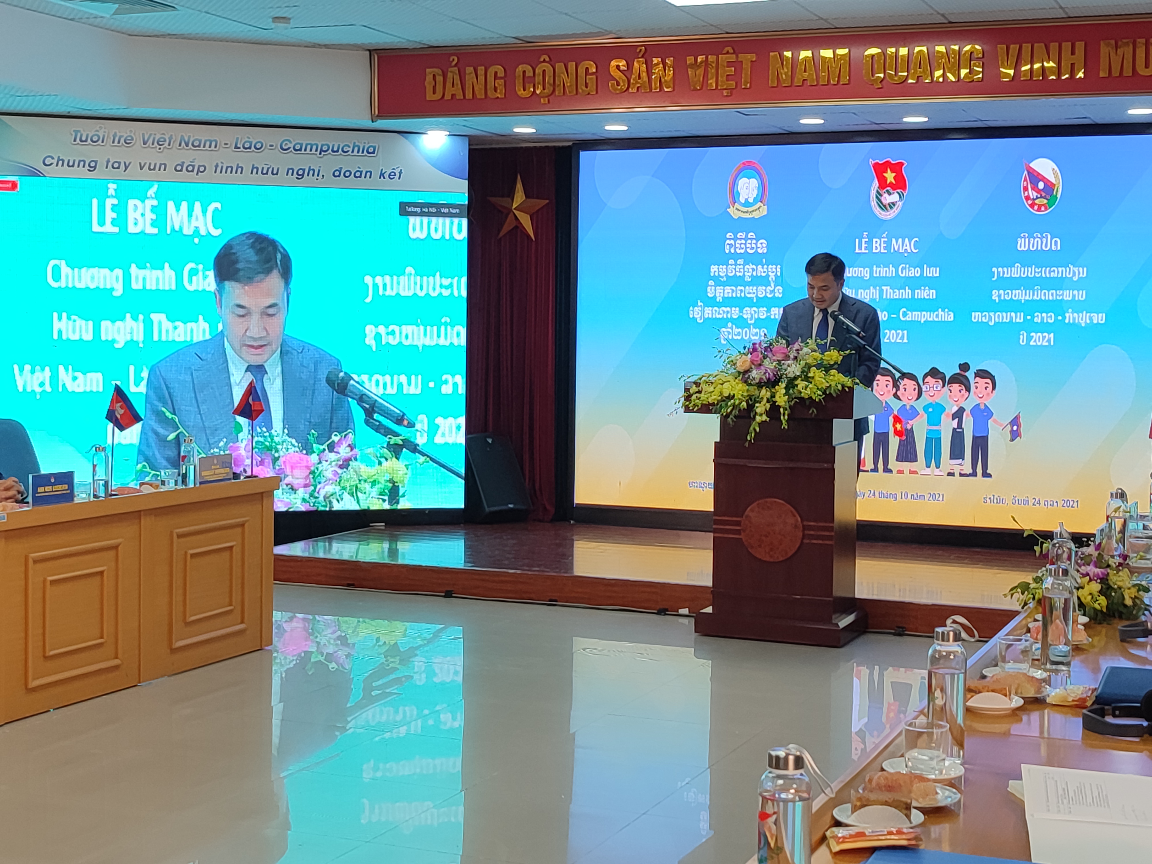 (VOVWORLD) - ໃນໄລຍະເວລາສອງວັນ ແຕ່ວັນທີ 22 – 23 ຕຸລາ, ຜູ້ແທນ 65 ທ່ານ ເຊິ່ງເປັນຊາວໜຸ່ມ, ນັກສຶກສາຜູ້ດີເດັ່ນຂອງ 3 ປະເທດ ຫວຽດນາມ - ລາວ - ກຳປູເຈຍ ໄດ້ພ້ອມກັນແບ່ງປັນປະສົບການຕົວຈິງ, ແລກປ່ຽນ, ປຶກສາຫາລືກ່ຽວກັບ 3 ຫົວຂໍ້: ໄວໜຸ່ມ ຫວຽດນາມ - ລາວ - ກຳປູເຈຍ ຮ່ວມແຮງຮ່ວມໃຈເພີ່ມພູນຄູນສ້າງສາຍພົວພັນໄມຕີຈິດມິດຕະພາບ, ຄວາມສາມັກຄີ; ຊາວໜຸ່ມ ຫວຽດນາມ - ລາວ - ກຳປູເຈຍ ປະຈັນບານ, ອາສາສະໝັກເຂົ້າຮ່ວມວຽກງານປ້ອງກັນ, ຕ້ານໂລກລະບາດ ໂຄວິດ - 19, ເພື່ອການຊ່ວຍໜູນສັງຄົມ; ຍົກສູງກຳລັງຄວາມສາມາດນຳໃຊ້ເຕັກໂນໂລຢີດີຈີຕອນໃຫ້ແກ່ຊາວໜຸ່ມ ຫວຽດນາມ - ລາວ - ກຳປູເຈຍ.