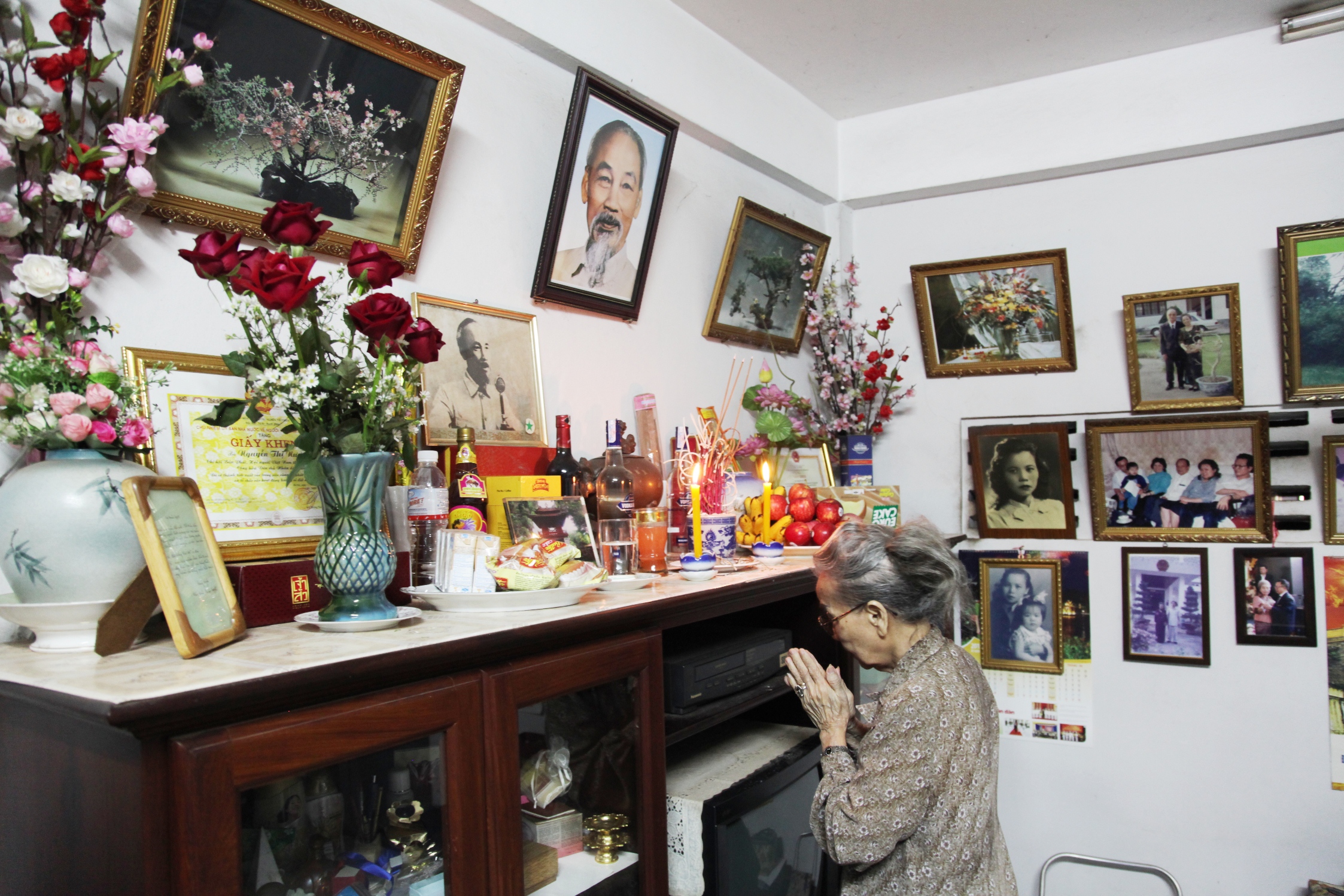 (VOVWORLD) - ຫຼາຍປີມານີ້, ເຖິງວ່າ ດຳລົງຊີວິດຢູ່ ໄທ, ຢູ່ ຝລັ່ງ ແລ້ວກັບມາດຳລົງຊີວິດຢູ່ ລາວ ກໍຕາມ ແຕ່ໃນສຳພາລະເດີນທາງຂອງຄອບຄົວ ແມ່ຕູ້ ຫງວຽນທິເນືອງ - ຊາວ ຫວຽດນາມ ອາໄສຢູ່ ບ້ານຝ້າຍ, ເມືອງ ສີສັດຕະນາດ, ນະຄອນຫຼວງ ວຽງຈັນ ຍາມໃດກໍຖືຮູບເຄິ່ງຄີງປະທານ ໂຮ່ຈີມິນ ໄປຕາມ. ສຳລັບຄອບຄົວຂອງແມ່ຕູ້ແລ້ວ, ນັ້ນແມ່ນສິ່ງທີ່ປະເສີດ ບໍ່ອາດຂາດໄດ້.