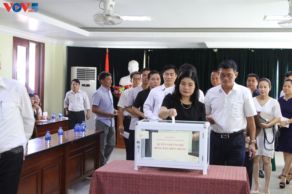 (VOVWORLD) - ວັນທີ 25 ຕຸລາ, ຢູ່ ວຽງຈັນ, ລາວ, ສະຖານທູດຫວຽດນາມ ປະຈຳ ລາວ ໄດ້ປຸກລະດົມການບໍລິຈາກ ເພື່ອຊ່ວຍເຫຼືອພໍ່ແມ່ພີ່ນ້ອງເຂດພາກກາງທີ່ຖືກຜົນກະທົບຈາກຝົນຕົກ, ນ້ຳຖ້ວມ.