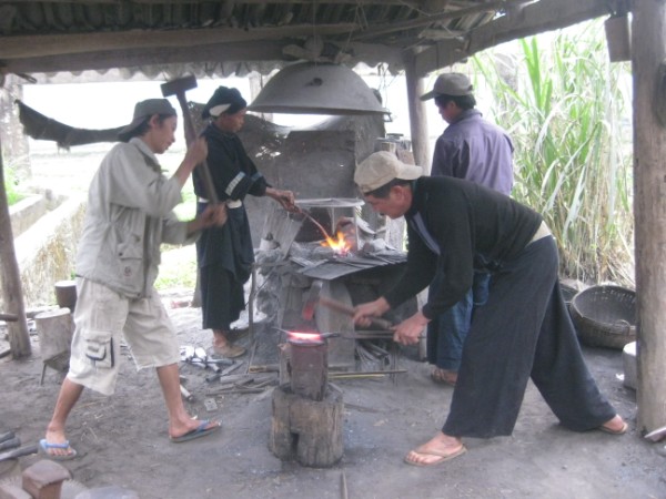 ຈາກກີ່ວ ມ້າຟຸກ, ຂີ່ລົດໄປຕາມທາງຫຼວງເລກ 3 ປະມານ 10 ກິໂລແມດ, ບັນດາເຮືອນຮ້ານຂອງຊາວເຜົ່ານຸ່ງ ໄດ້ປະກົດຂຶ້ນໃນທ່າມກາງນ້ຳໝອກກິ້ວ. ແຕ່ຫົວທາງ, ສຽງຕີເຫຼັກໄດ້ດັງກ້ອງກັງວານຂຶ້ນ ໄປທົ່ວບໍລິເວນ ຄືຢາກແນະນຳໃຫ້ ທຸກໆຄົນທັງຢູ່ໃກ້ຫຼືໄກຮູ້ເຖິງ ອາຊີບຕີເຫຼັກທີ່ມີມາແຕ່ດົນນານຢູ່ແຫ່ງນີ້