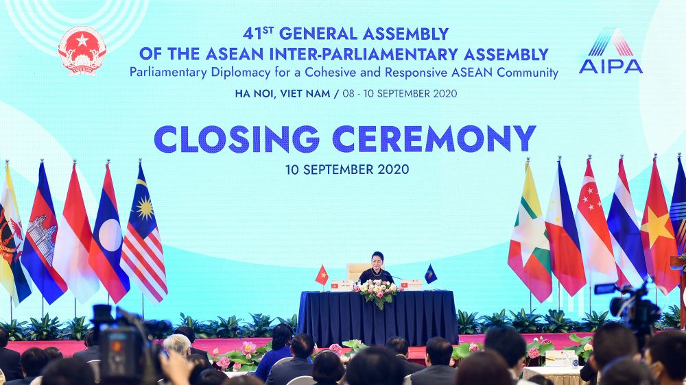 (VOVWORLD) -ຕອນເຊົ້າວັນທີ 10 ກັນຍາ, ກອງປະຊຸມສະມັດຊາໃຫຍ່ ລັດຖະສະພາລະຫວ່າງຊາດ ອາຊຽນ ຄັ້ງທີ 41 (AIPA 41) ດ້ວຍຫົວຂໍ້ “ການທູດລັດຖະສະພາ ເພື່ອປະຊາຄົມ ອາຊຽນ ສະໜິດຕິດພັນ ແລະ ເປັນເຈົ້າການຮັບມື” ໄດ້ປິດລົງພາຍຫຼັງດໍາເນີນມາເປັນເວລາ 3 ວັນຜ່ານທາງອອນລາຍ. ພິທີປິດໄດ້ດໍາເນີນພາຍໃຕ້ການເປັນປະທານຂອງທ່ານນາງປະທານສະພາແຫ່ງຊາດຫວຽດນາມ ຫງວຽນທິກິມເງິນ, ປະທານ ກອງປະຊຸມສະມັດຊາໃຫຍ່ AIPA 41.