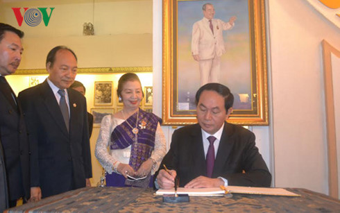 ໃນການໄປຢ້ຽມຢາມ ພິພິທະພັນ ໄກສອນພົມ ວິຫານ, ເຂດອະນຸສະຖານປະທານສຸພານຸວົງ, ທ່ານ ປະທານປະເທດ ເຈີ່ນດ້າຍກວາງ ຮູ້ສຶກຕື້ນຕັນໃຈ ອາໄລຫາເຖິງປະທານໄກສອນ ພົມວິຫານ, ປະທານສຸພານຸວົງ, ບັນດາການນຳທີ່ດີເດັ່ນ, ນັກຮົບປະຕິວັດຜູ້ຍິງໃຫຍ່, ລູກສິດຂອງພັກ ແລະ ລັດຖະບານລາວ, ເປັນເພື່ອນຜູ້ຍິ່ງໃຫຍ່ ແລະສະໜິດສະໜົມ, ສະໜິດຕິດພັນ, ສັດຊື່ບໍລິສຸດ ຂອງພັກ, ລັດ ແລະ ປະຊາຊົນຫວຽດນາມ. ທ່ານປະທານປະເທດ ເຈີ່ນດ້າຍກວາງ ຢືນຢັນວ່າ: ພັກ, ລັດ ແລະ ປະຊາຊົນຫວຽດນາມ ໝັ້ນໝາຍຈະພ້ອມກັບພັກ, ລັດ ແລະ ປະຊາຊົນລາວ ເຮັດຈົນສຸດຄວາມສາມາດຂອງຕົນ ເພື່ອປົກປັກຮັກສາ ແລະ ເພີ່ມພູນຄູນສ້າງ ໃຫ້ສາຍພົວພັນມິດຕະພາບ, ຄວາມສາມັກຄີແບບພິເສດຫວຽດນາມ-ລາວ ນັບມື້ນັບພັດທະນາ ຢ່າງບໍ່ຢຸດຢັ້ງ ແລະ ໝັ້ນຄົງທະນົງແກ່ນໄປຊົ່ວກາລະນານ ເພື່ອໃຫ້ລຸ່ນຄົນຕໍ່ໆໄປຮ່ຳຮຽນເອົາ.