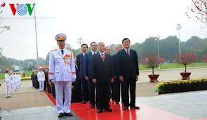(vovworld)- ສະເຫຼີມສະຫຼອງ 68 ປີແຫ່ງວັນຊາດຫວຽດນາມ (2/9), ຕອນເຊົ້າວັນທີ 30/8, ຄະນະຜູ້ແທນຄະນະບໍລິຫານງານສູນກາງພັກ, ປະທານປະເທດ, ສະພາແຫ່ງຊາດ, ລັດຖະບານ, ຄະນະກຳມະການສູນກາງແນວໂຮມປະເທດຊາດຫວຽດນາມ ໄດ້ໄປວາງພວງມາລາ ແລະ ເຂົ້າໄຫວ້ອາໄລຢູ່ສຸສານປະທານໂຮ່ຈິມິນ ການນຳຜູ້ປີຊາສາມາດຂອງພັກ ແລະ ປຊຊ ຫວຽດນາມ, ອາຈານຜູ້ຍິງໃຫ່ຍຂອງການປະຕິວັດຫວຽນາມ, ນັກວິລະຊົນປົດປ່ອຍຊາດ, ຜູ້ທີ່ໄດ້ອຸທິດຕະຫຼອດຊີວິດເພື່ອເອກະລາດຂອງປະເທດຊາດ ແລະ ເພື່ອຄວາມເສລີພາບ, ຄວາມຜາສຸກຂອງ ປຊຊ. ເຂົ້າຮ່ວມພິທີມີທ່ານເລຂາທິການໃຫ່ຍຄະນະບໍລິຫານງານສູນກາງພັກກອມມູນິດຫວຽດນາມ ຫງວຽນຟູຈ້ອງ, ທ່ານປະທານປະເທດເຈືອງເຕີນຊາງ, ທ່ານນາຍົກລັດຖະມົນຕີຫງວຽນເຕິນຢຸງ, ທ່ານປະທານສະພາແຫ່ງຊາດຫງວຽນຊິງຮຸ່ງ, ທ່ານປະທານຄະນະກຳມະການສູນກາງແນວໂຮມປະເທດຊາດຫວຽດນາມ ຮິງດ໋າມ…ພ້ອມດ້ວຍອະດີດການນຳພັກ, ລັດ, ການນຳບາງກະຊວງ, ຂະແໜງການ, ອົງການຈັດຕັ້ງມະຫາຊົນສູນກາງ…ພວງມາລາຂອງຄະນະມີແຖວໜັງສື “ຈົດຈຳບຸນຄຸນປະທານໂຮ່ຈິມິນ ຜູ້ຍິງໃຫ່ຍຕະຫຼອດໄປ“.