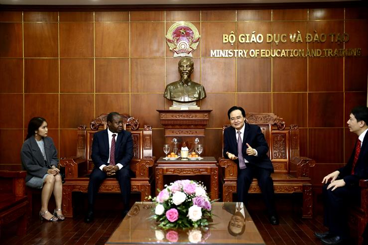 ທ່ານລັດຖະມົນຕີກະຊວງສຶກສາ ແລະ ກໍ່ສ້າງ ຫວຽດນາມ ຟຸ່ງຊວັນຍະ ຕ້ອນຮັບທ່ານ Agostinho Andre de Carvalho Fernandes ເອກອັກຄະລັດຖະທູດ ອັງໂກລາ ປະຈໍາ ຫວຽດນາມ |