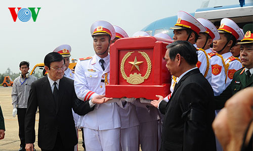 ຊັກທຸງລົງເຄິ່ງເສົາໃນພິທີງານສົບພົນເອກ ຫວໍ້ງວຽນຢາບ