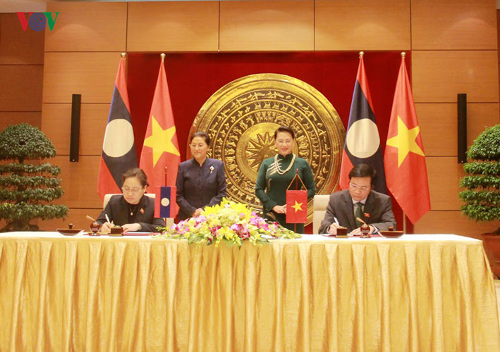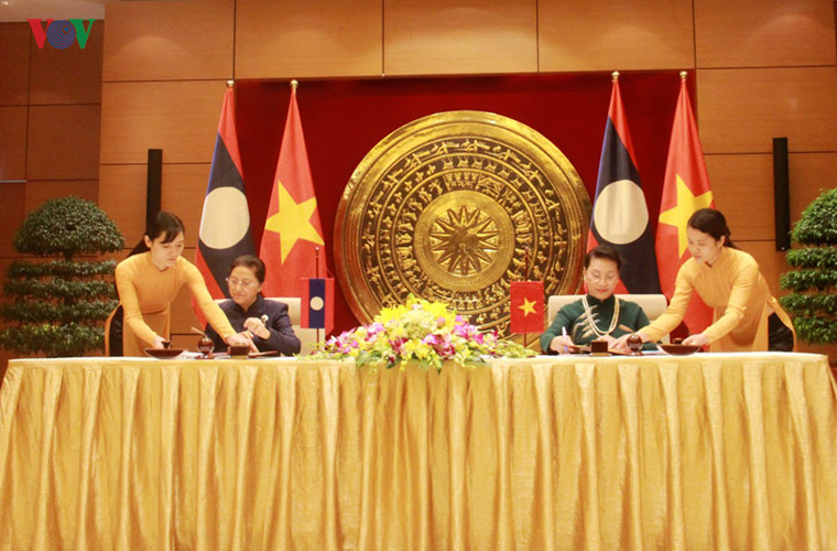 ພາຍຫລັງການເຈລະຈາ, ທ່ານນາງປະທານສະພາແຫ່ງຊາດຫວຽດນາມ ຫງວຽນທິກີມເງິນ ແລະ ທ່ານນາງ ປານີ ຢາທໍ່ຕູ້, ປະທານສະພາແຫ່ງຊາດ ລາວ ພ້ອມກັນດຳເນີນພິທີລົງນາມໃນຂໍ້ຕົກລົງຮ່ວມມືລະຫວ່າງສະພາແຫ່ງຊາດຫວຽດນາມ ແລະລາວ.