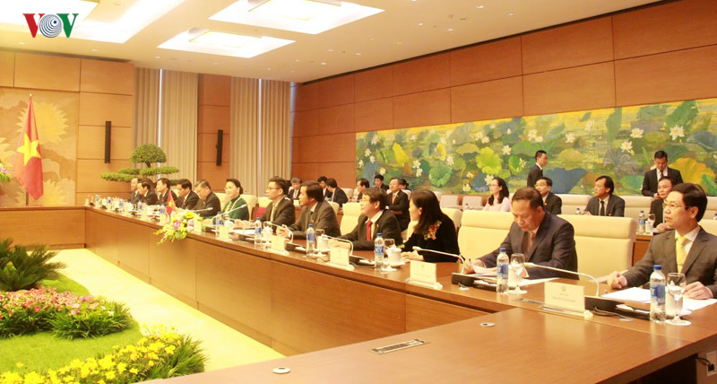 vovworld - ໂດຍໄດ້ຮັບຄຳເຊີນຂອງທ່ານນາງປະທານສະພາແຫ່ງຊາດຫວຽດນາມ ຫງວຽນທິກີມເງິນ, ຄະນະຜູ້ແທນຂັ້ນສູງສະພາແຫ່ງຊາດ ສປປ ລາວ ໂດຍທ່ານນາງ ປານີ ຢາທໍ່ຕູ້, ປະທານສະພາແຫ່ງຊາດ ລາວ ນຳຫນ້າ ໄດ້ມາຢ້ຽມຢາມສັນຖະວະໄມຕີ ຫວຽດນາມ ຢ່າງເປັນທາງການ ແຕ່ວັນທີ 5-10/3.