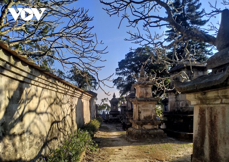 | ຢູ່ອ້ອມແອ້ມ ທາດ ເຫ້ວກ໋ວາງກິມ ກໍ່ມີທາດນ້ອຍນັບຮ້ອຍທາດ ໂດຍເປັນບ່ອນເກັບຮັກສາ ອັດຖິຂອງ ບັນດາພະມະຫາອາຈານ ທີ່ບວດຢູ່ ອຽນຕື ໃນບັນດາສະໄໝເຈົ້າຊີວິດ ລີ໊, ເຈິ່ນ, ເລ ແລະ ຫງວຽນ. |