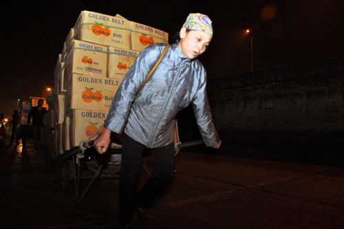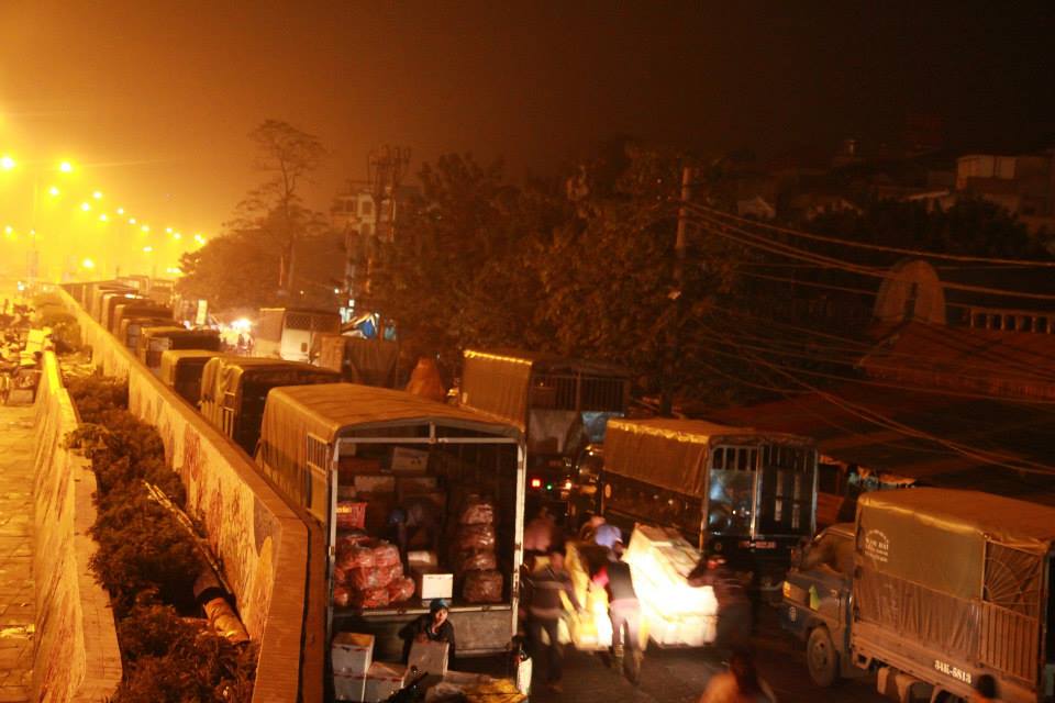 ເຮັດວຽກຮອດຮຸ່ງເຊົ້າ, ແຕ່ວຽກງານຂອງພວກແມ່ຍິງຂົນເຄື່ອງຮັບຈ້າງກໍຍັງບໍ່ທັນສິ້ນສຸດເທື່ອ. ເຂົາເຈົ້າພະຍາຍາມຂົນເຄື່ອງຕື່ມອີກ 2-3 ຖ້ຽວສຸດທ້າຍເພື່ອຫາເງິນຕື່ມເລກນ້ອຍ. ບັນດາຫີບເຄື່ອງໃຫຍ່ຖືກວາງກອງກັນເທິງຕູ້ລົດ ແລະ ລົດບັນທຸກສິນຄ້າແຕ່ລະຄັນຍັງຄົງຄ່ອຍແລ່ນບົນເສັ້ນທາງເຕັມໄປດ້ວຍຂຸມຂີ້ຕົ້ມເຂົ້າຕະຫຼາດຂາຍສົ່ງໃຫຍ່ກວ່າໝູ່ໃນນະຄອນຫຼວງຮ່າໂນ້ຍ. /.