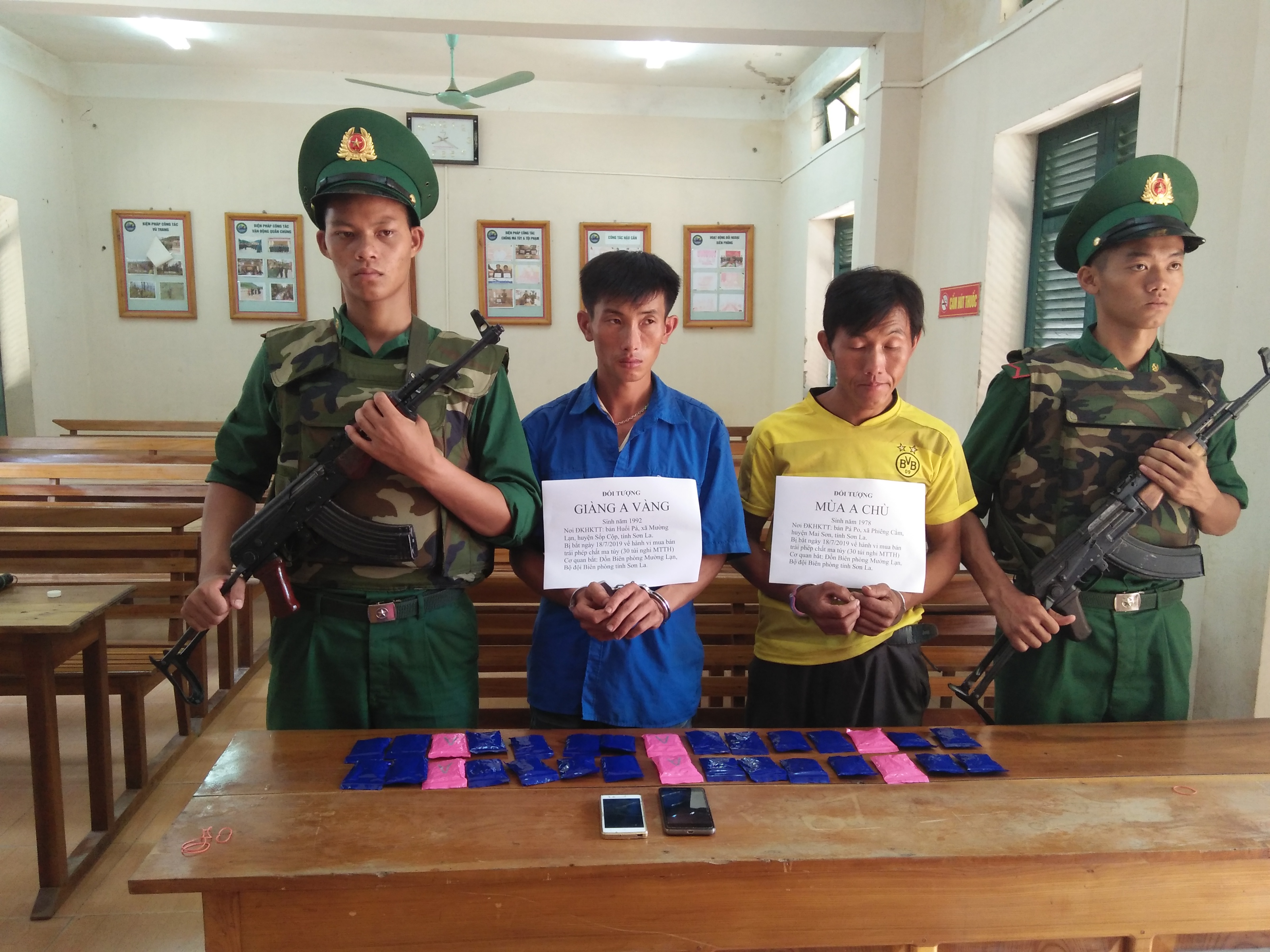 Vào khoảng 18h ngày 18/7, tại khu vực bản Khá, xã Mường Lạn, huyện Sốp Cộp, tỉnh Sơn La, phòng phòng chống ma túy và tội phạm chủ trì phối hợp với Đồn Biên phòng Mường Lạn, Bộ đội Biên phòng Sơn La đã bắt quả tang 02 đối tượng về hành vi mua bán trái phép chất ma túy.
