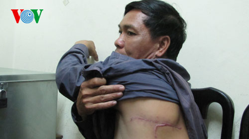 | Ông Lực với những vết chém trên cơ thể |