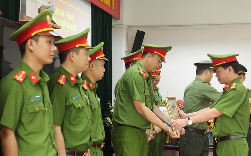 | 38 cá nhân cán bộ chiến sĩ công an Long Biên có thành tích xuất sắc được UBND quận Long Biên khen thưởng ngày 6/5 vừa qua. |