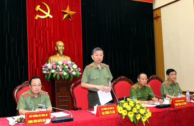 | Bộ trưởng Bộ Công an Tô Lâm phát biểu chỉ đạo hội nghị. |