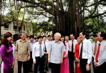 (VOVworld) - Утром 9 июня генеральный секретарь ЦК КПВ Нгуен Фу Чонг посетил редакцию газеты «Нянзан» - органа печати ЦК КПВ. В беседе с корреспондентами и редакторами газеты Нгуен Фу Чонг высоко оценил успехи, достигнутые газетой «Нянзан» за прошедшее время,