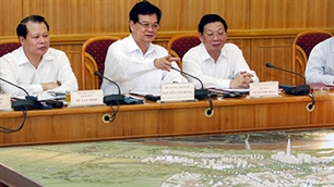 (VOVworld) - 14 апреля во второй половине дня премьер-министр Нгуен Тан Зунг, вице-премьер Ву Ван Нинь и представители министерств и центральных отраслей провели рабочую встречу с руководителями народного комитета Ханоя по выполнению общего плана строительства Ханоя до 2030 года и взгляда на 2050 год.