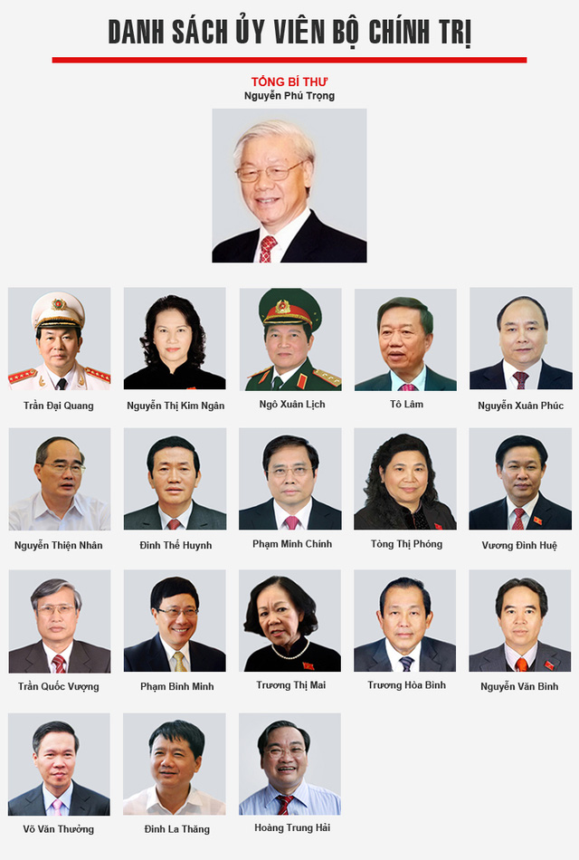 | Список членов Политбюро ЦК КПВ 12-го созыва. Фото: Dantri |