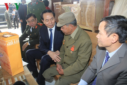 (VOVworld) – 18 января в городе Хайфон президент Вьетнама Чан Дай Куанг посетил и поздравил военнослужащих командования ВМС Вьетнама с наступающим Новым годом по лунному календарю, нанёс визит и вручил новогодние подарки семьям льготной категории, а также зажёг благовония и посадил памятное дерево на территории комплекса исторических памятников «Чангкень». Во время беседы через телемост с солдатами и жителями на островах Чыонгша Лон, Шонгты Тэй, Шиньтон президент подтвердил, что партия, государство и соотечественники на материке уделяют постоянное внимание и выражают особые чувства солдатам и жителям на островах страны. Глава государства пожелал солдатам и жителям на островах страны крепкого здоровья и всего наилучшего в Новом году, чтобы надёжно защитить суверенитет над морем и островами Родины.